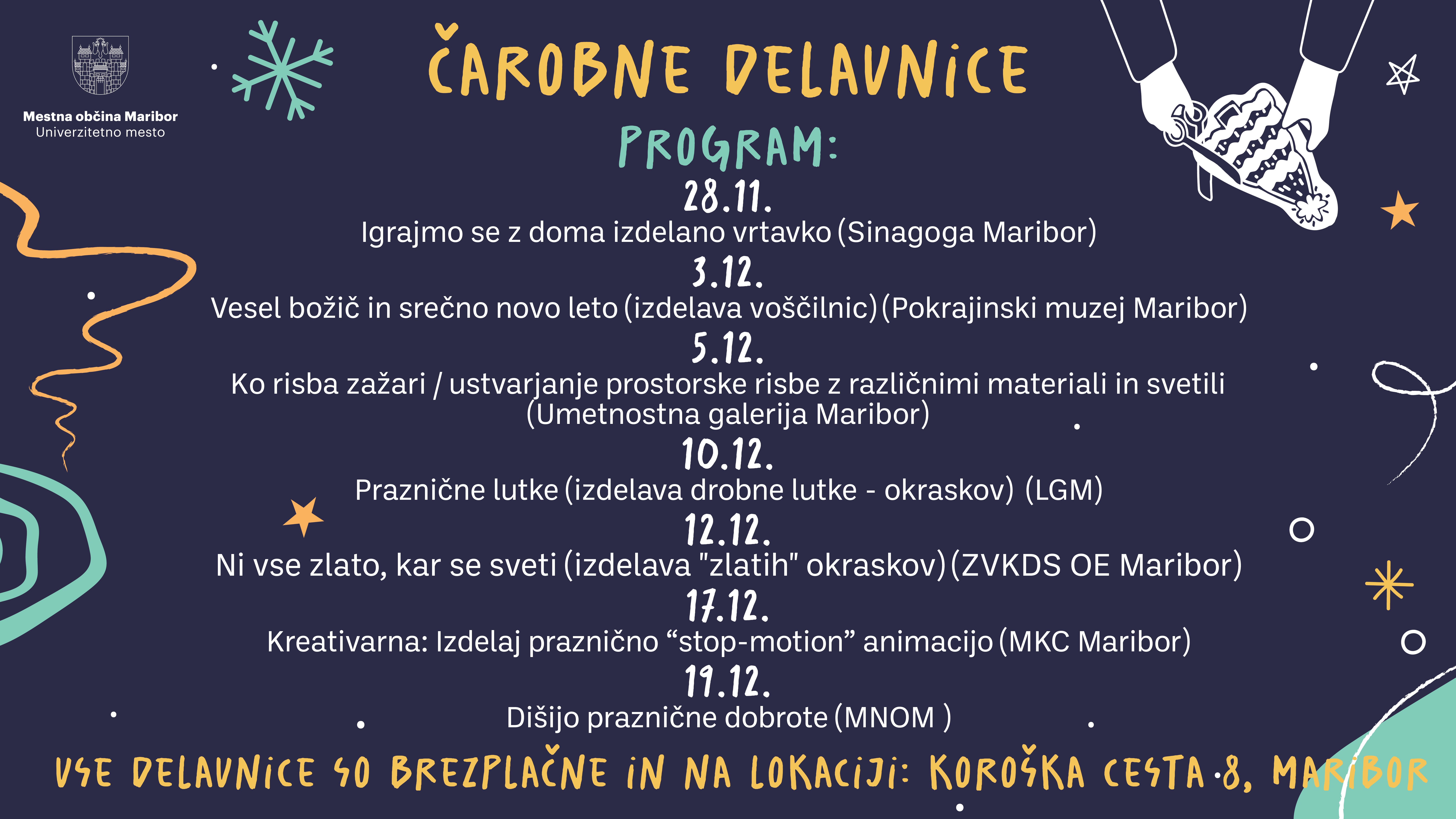 - 3. 12. I Vesel božič in srečno novo leto: izdelava voščilnic; izvajalec Pokrajinski muzej Maribor.