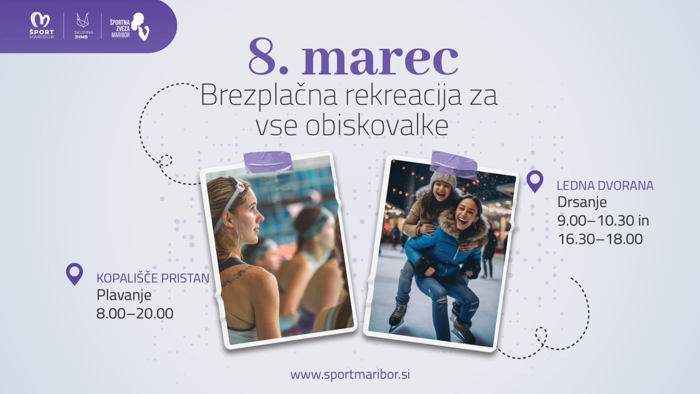 Šport Maribor iz Skupine JHMB in Športna zveza Maribor bosta tudi letos ob dnevu žena vsem obiskovalkam omogočila brezplačno drsanje in plavanje. Tradicionalna akcija, ki jo partnerja izvajata že tretje leto zapored, je namenjena spodbujanju gibanja, dobrega počutja in aktivnega preživljanja prostega časa.
